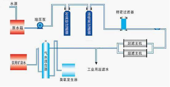礦泉水水源原水箱原水增壓泵石英砂過(guò)濾器活性炭過(guò)濾器精密過(guò)濾器高壓泵超濾主機(jī)工業(yè)超濾水臭氧發(fā)生器氣水混合器飲用礦泉水